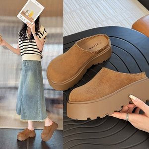 磨砂包头勃肯鞋女2025春季新款松糕厚底增高休闲外穿博肯半拖鞋女