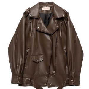 秋冬多色中长款加绒设计感休闲宽松机车PU皮夹克复古外套上衣中性