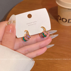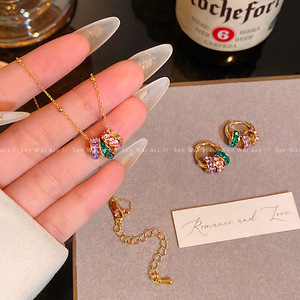 多巴胺彩色闪钻圆圈耳环项链套装复古精致小巧百搭高级感配饰品女