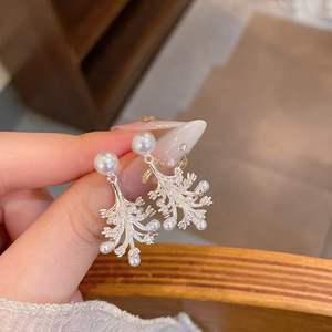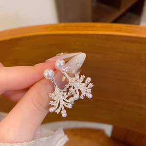 韩式超闪锆石烟花珍珠耳钉冷淡风甜美小众设计感耳环独特个性耳饰