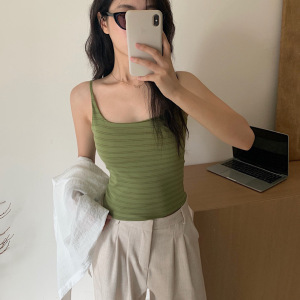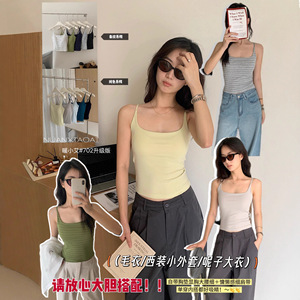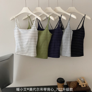 新款暖小艾®莫代尔吊带背心702升级款条纹纯色带胸垫修身美背女