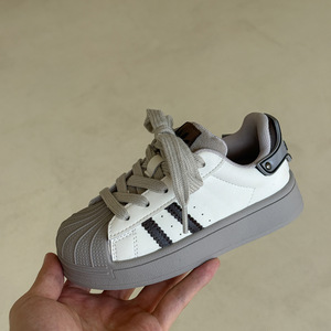 QQO童鞋 2025秋季款儿童经典真皮贝壳头板鞋韩版男女童软底休闲鞋