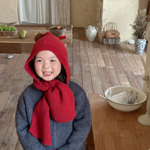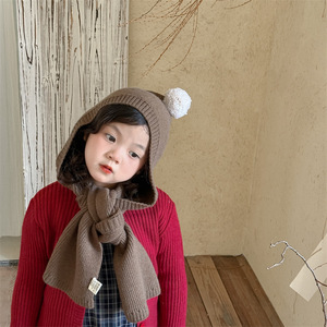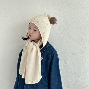 巴拉克防风男女孩新款护耳针织帽儿童帽帽子围巾围脖保暖一体拉法
