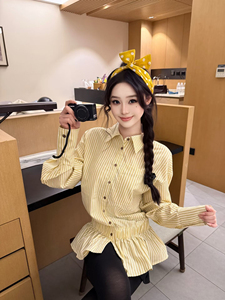 美式甜辣中长款条纹衬衫女装早秋设计感收腰显瘦别致小衫绝美上衣