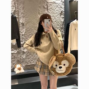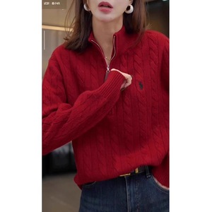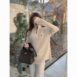 麻花刺绣半拉链毛衣女2025春秋冬小众软糯高级感针织衫慵懒风上衣