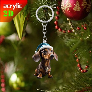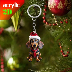 跨境新品热销腊肠狗汽车摆件背包挂饰亚克力平面圣诞节日装饰品