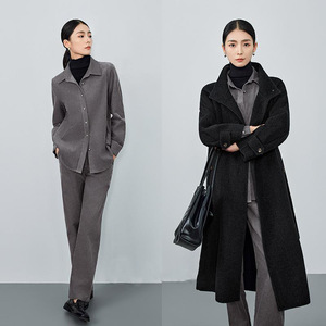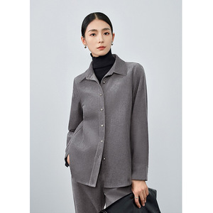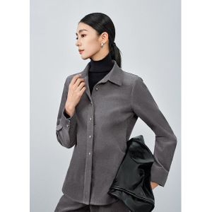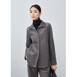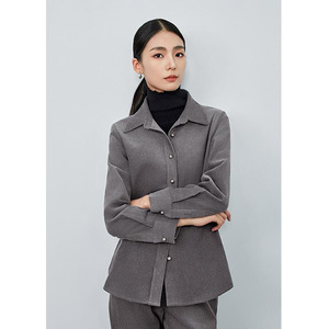 老钱复古深灰色衬衫女2025秋冬季新款高级感加厚休闲叠穿长袖衬衣