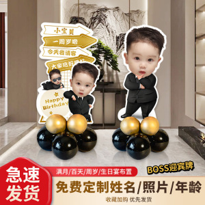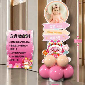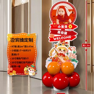 百日宴布置百天满月宴周岁迎宾牌男女孩宝宝生日装饰立牌背景kt板