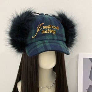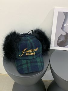宁艺卓同款格纹毛绒护耳帽女秋冬百搭时尚棒球帽显脸小保暖鸭舌帽