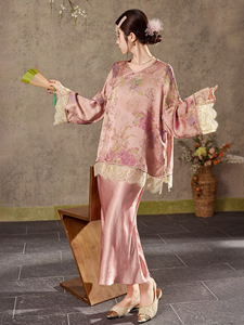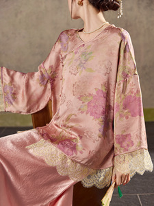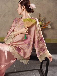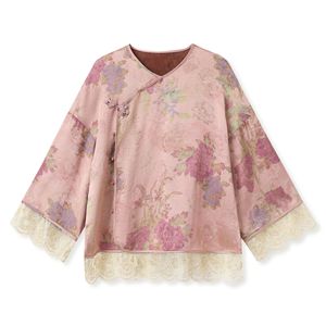 新中式国风盘扣衬衫女2025早秋长袖蕾丝拼接宽松轻奢衬衣 N6047