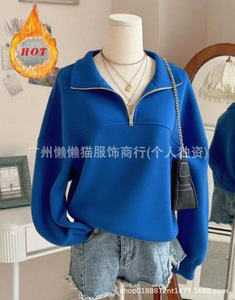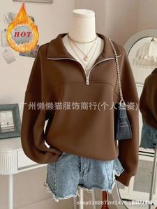 欧美跨境SHEIN2025秋冬新款返校时尚休闲长袖外套V领半拉链宽松卫