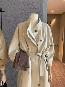 【WGWE】7039广州十三行女装2025秋装新款插肩袖风衣外套长款大衣