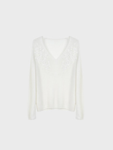 2025新款时尚轻奢设计感V领刺绣长袖针织衫女士3793