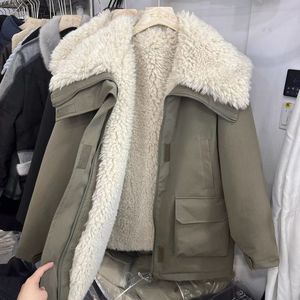 大翻领加绒加厚休闲外套女2025冬季新款工装派克服女装感上衣