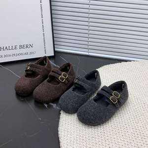 复古双排扣毛呢平底玛丽珍鞋女2025新款秋冬季时尚百搭加绒毛毛鞋