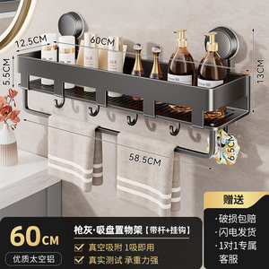 ZB吸盘浴室架60cm带钩杆-枪灰色