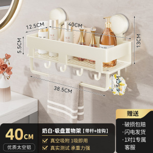 ZB吸盘浴室架40cm带钩杆-奶白色