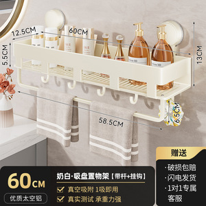 ZB吸盘浴室架60cm带钩杆-奶白色