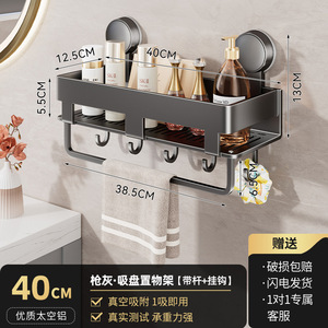 ZB吸盘浴室架40cm带钩杆-枪灰色