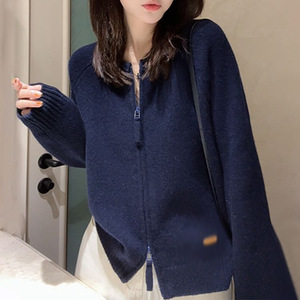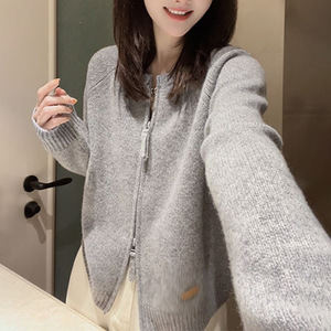 批发2025新款设计感双拉链韩系毛衣针织衫女开衫外套洋气宽松上衣