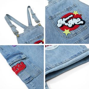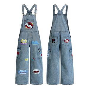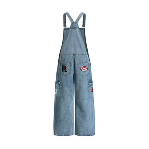 美式复古水洗字母刺绣宽松牛仔多口袋背带裤男女情侣减龄连体裤