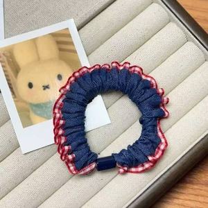 甜美蕾丝边牛仔发圈时尚百搭少女发绳可爱甜美扎发皮筋高马尾头饰