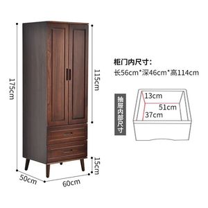实木衣柜卧室收纳现代简约小户型家用儿童房储物柜胡桃色衣柜抽屉