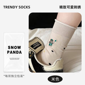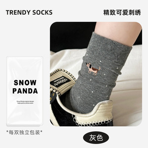 秋季新款可爱卡通小狗中筒袜学院风双罗口棉袜搞怪袜子诸暨袜业