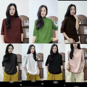 糯米羊绒阔版休闲五分打底衫1035