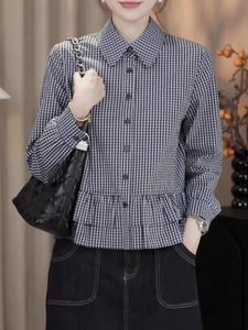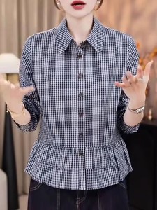厂家直销蓝色格子衬衫女25秋新款轻奢高级感洋气减龄宽松休闲上衣