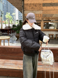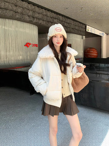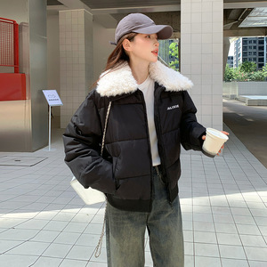 羊羔毛翻领棉服女2025冬装新款复古短款棉衣美式面包服学生外套潮