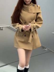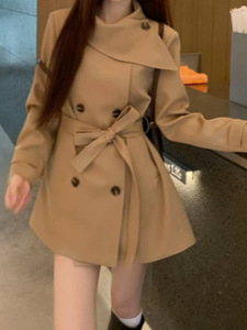 千金感气质休闲收腰风衣外套女装2025秋冬款百搭双排扣通勤上衣女