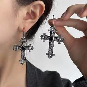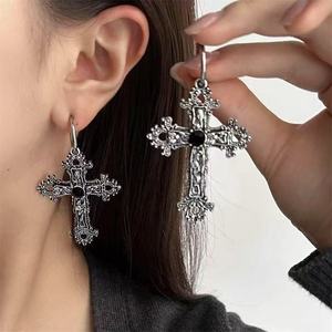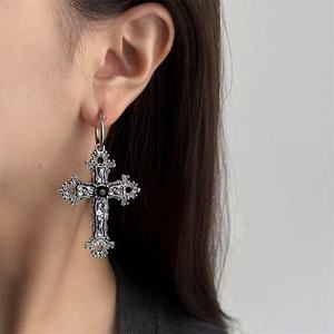欧美个性夸张十字架耳环复古嘻哈甜酷辣妹风耳坠小众高级感耳饰品