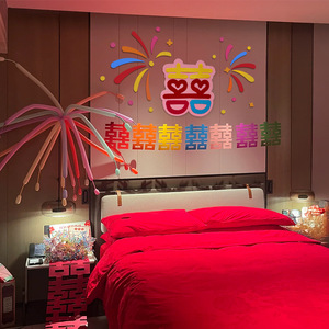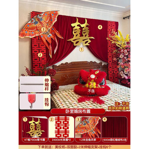 新中式婚礼女方卧室床头背景墙婚房布置氛围感结婚喜字装饰全装套