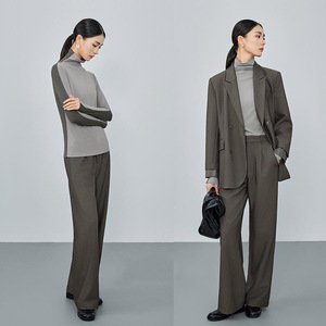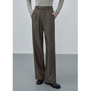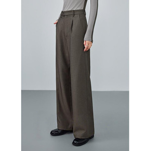 高级感羊毛休闲裤西裤女2025秋季新款复古灰棕色潮流阔腿裤直筒裤