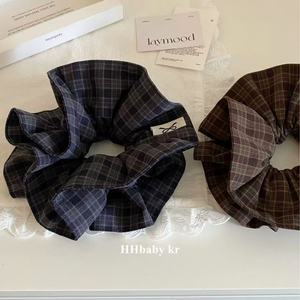 高级感双层格纹大肠发圈女韩系低马尾头绳扎头发绳丸子头皮筋发饰