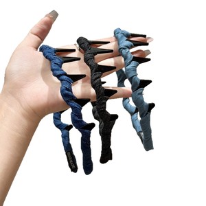 蓝色牛仔带齿防滑发箍女夏天2025新款高级感洋气头箍梳头发卡发饰