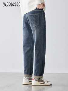 WOOG2005深蓝色水洗弹力休闲牛仔裤男2025春秋季新款潮直筒长裤子