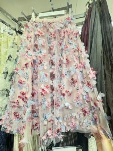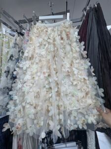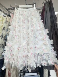 重工花朵立体花瓣网纱仙女纱裙2025秋新款遮胯长款伞裙半身裙1913