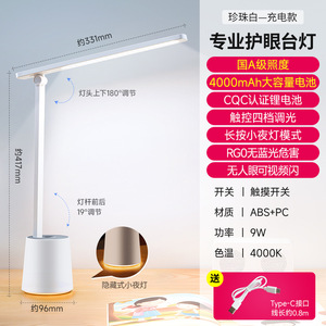 欧普国A级充电插电护眼台灯学生学习专用宿舍大容量卧室超长续航