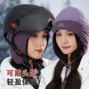 可戴头盔保暖帽子女士骑车加绒加厚护耳内胆帽东北防风防寒滑雪帽