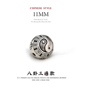 11mm纯银八卦珠 孔道约1.8mm(克重约1.0~1.2g)
