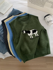 软糯亲肤动物提花圆领针织马甲女秋冬减龄韩版叠穿套头毛衣背心