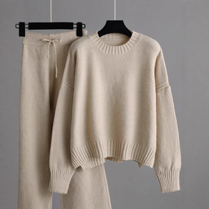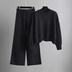 2025秋冬新款时尚休闲针织套装裤女版宽松毛衣阔腿裤长裤两件套