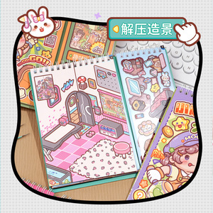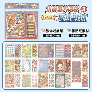 小麻薯闯关游戏贴纸本创意造景贴纸书儿童立体贴画解压手支持代发