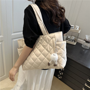 秋冬新款简约大容量托特包女士斜挎包轻便休闲质感时尚菱格斜挎包