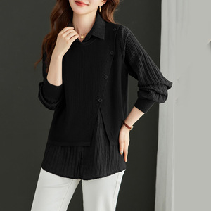 秋装时尚设计感假两件针织衫女2025秋季新款气质女士百搭春秋上衣