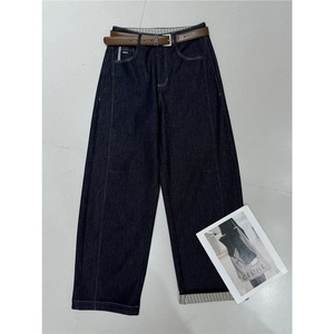 S~2025早秋新款韩版设计感带腰带可卷边显瘦百搭牛仔裤女
