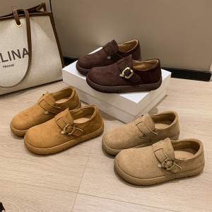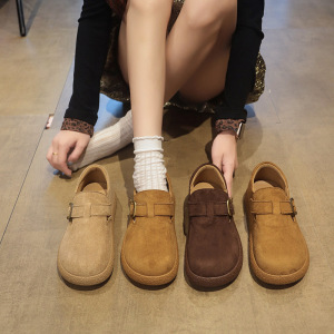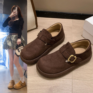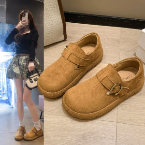 2025春秋季新款复古磨砂皮百搭厚底博肯鞋懒人一脚蹬乐福鞋女