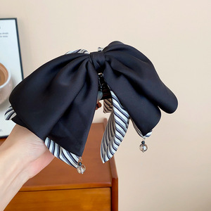 亚克力布艺蝴蝶结拼色发夹抓夹气质高级感鲨鱼夹女简约发饰马尾夹